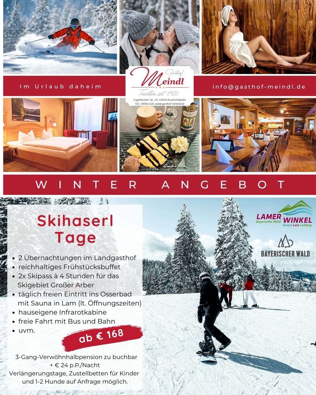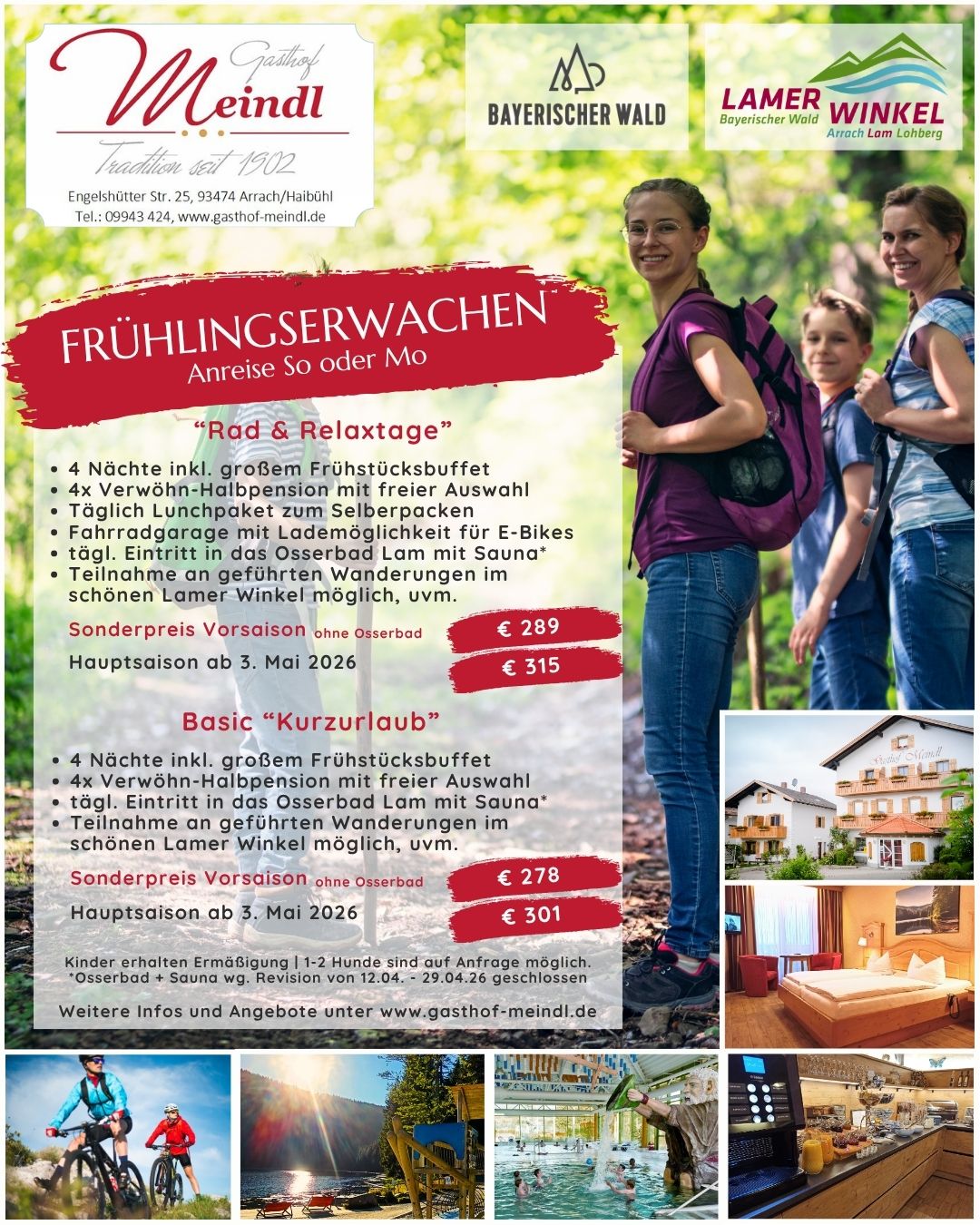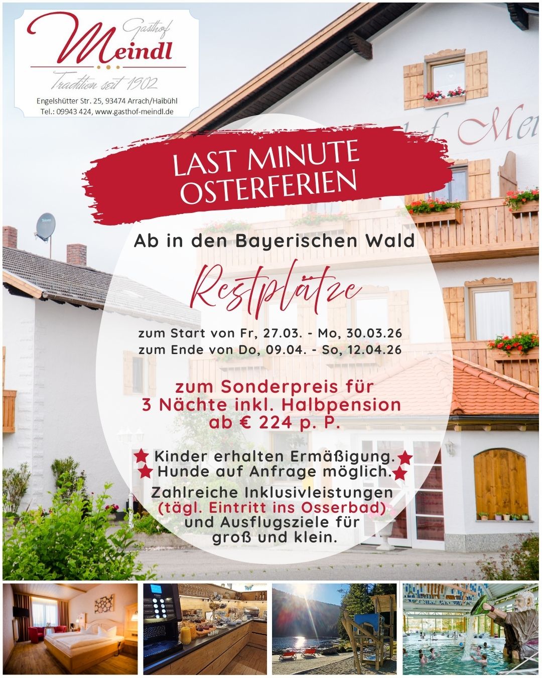 Und das Highlight: Unsere Hausgäste genießen täglich kostenfreien Eintritt ins nahegelegene Osserbad Lam mit Sauna, Freibad und Rutschen – so oft und so lange, wie Sie möchten.